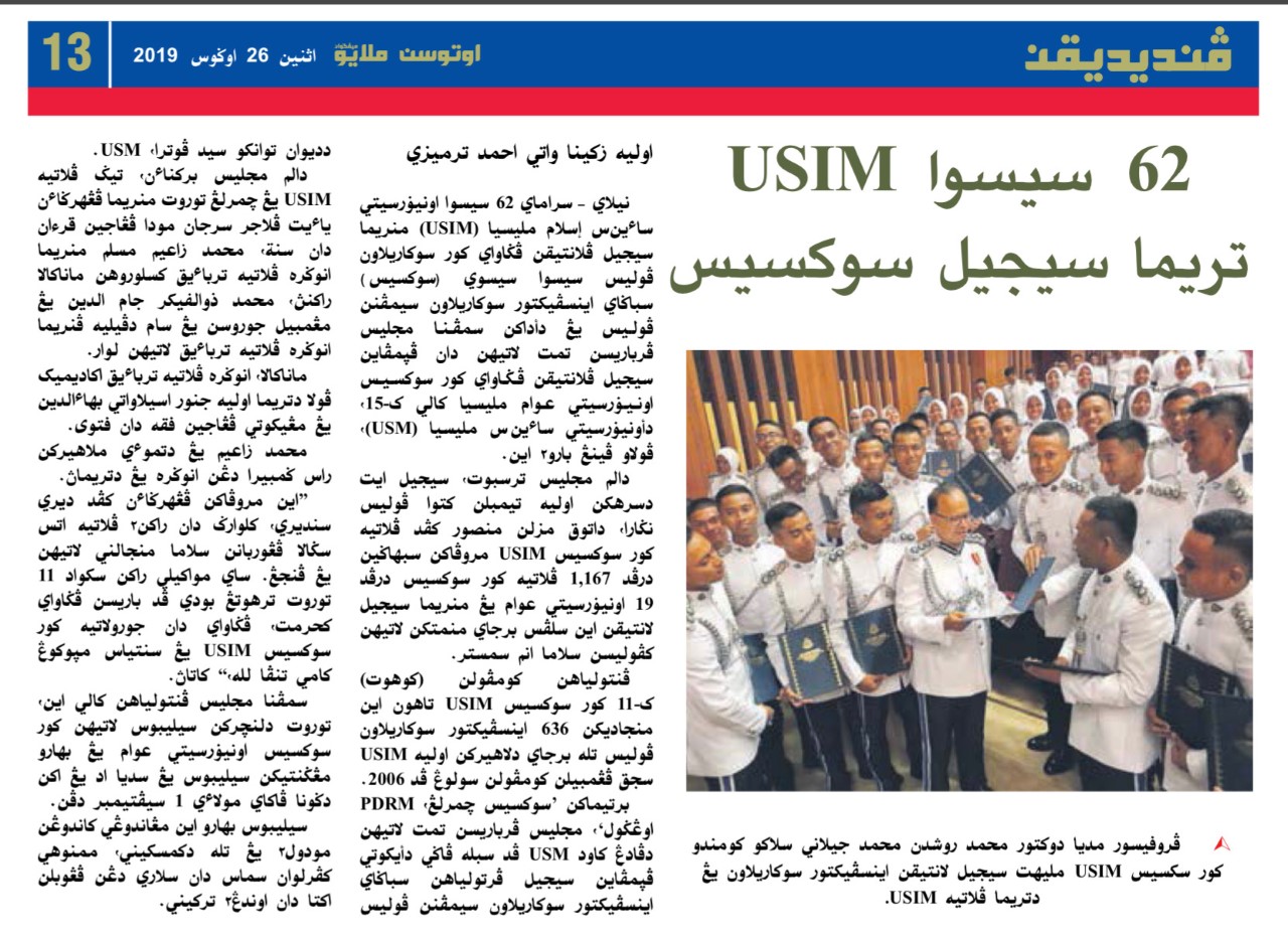 62 Siswa USIM Terima Sijil SUKSIS