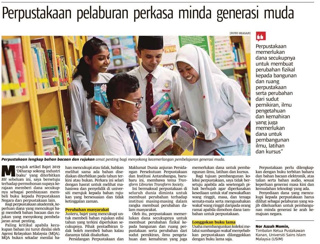 BERITA HARIAN 1 NOVEMBER 2018 MS 70 PERPUSTAKAAN PELABURAN PERKASA MINDA GENERASI MUDA.jpg