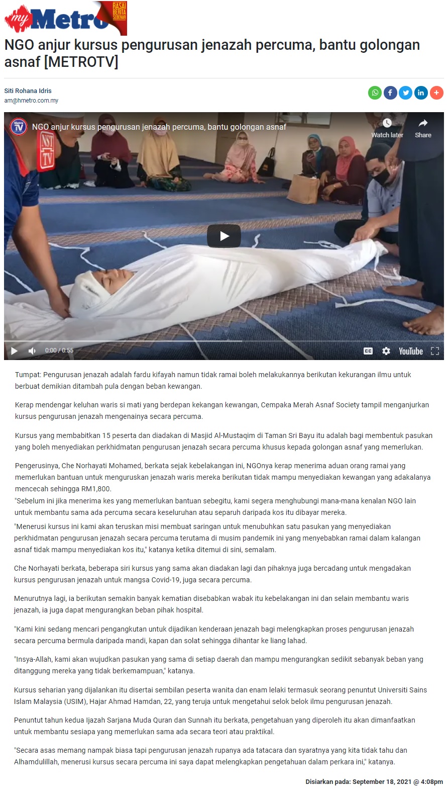NGO Anjur Kursus Pengurusan Jenazah Percuma, Bantu Golongan Asnaf