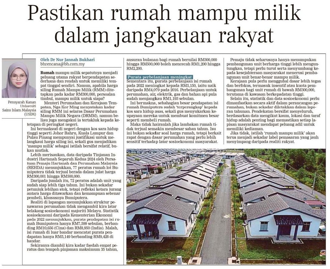 Pastikan rumah mampu milik dalam jangkauan rakyat