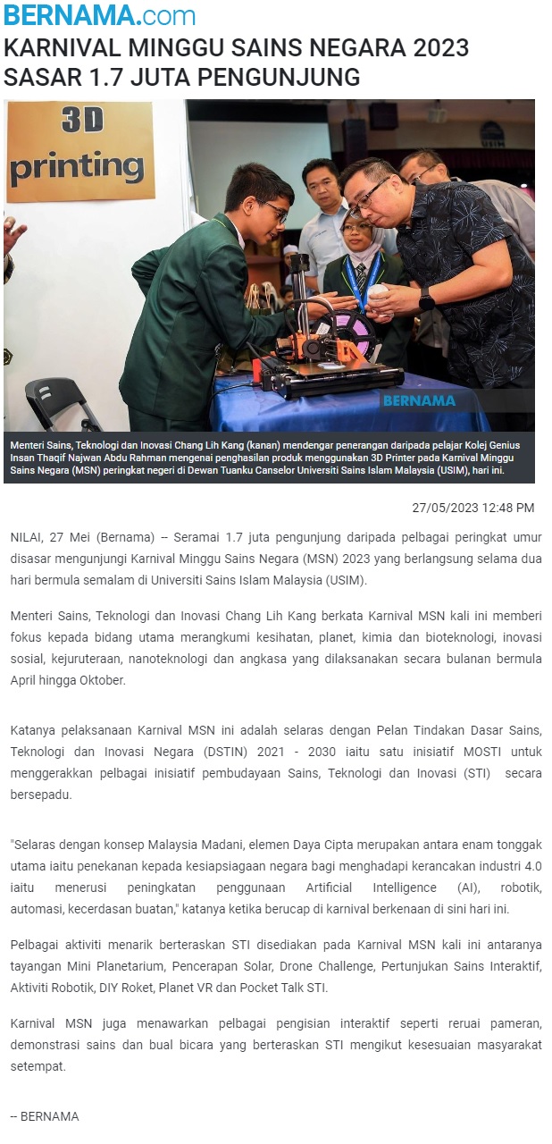 Karnival Minggu Sains Negara 2023 Sasar 1.7J Pengunjung