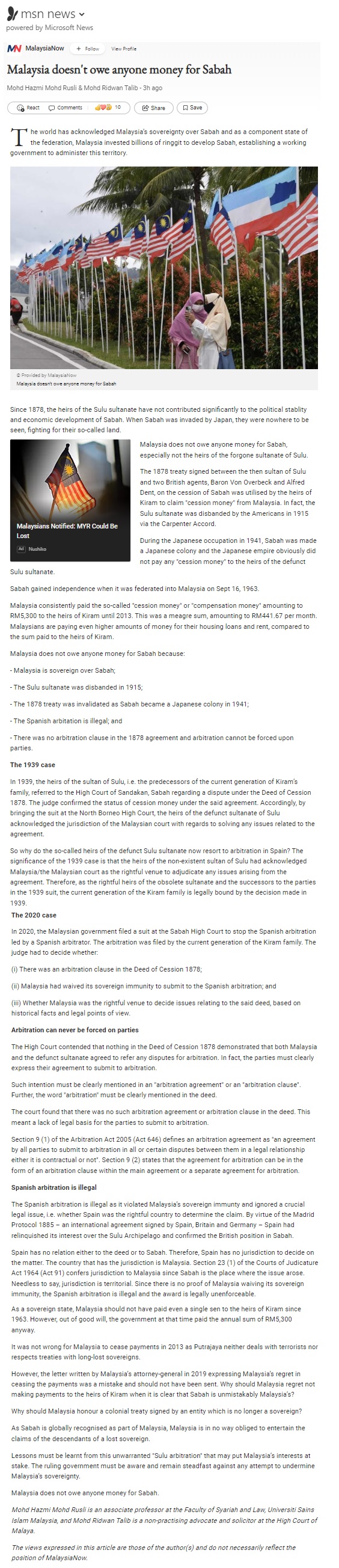 Malaysia Doesn’t Owe Anyone Money For Sabah