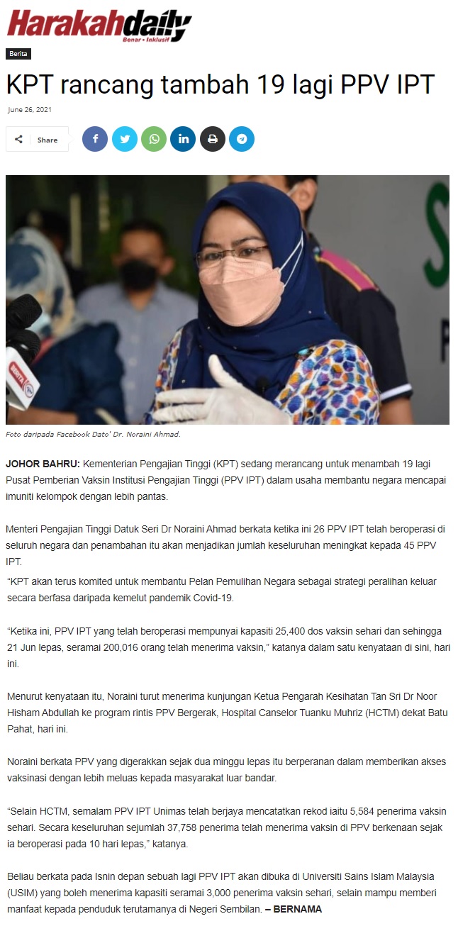 KPT Rancang Tambah 19 Lagi PPV IPT
