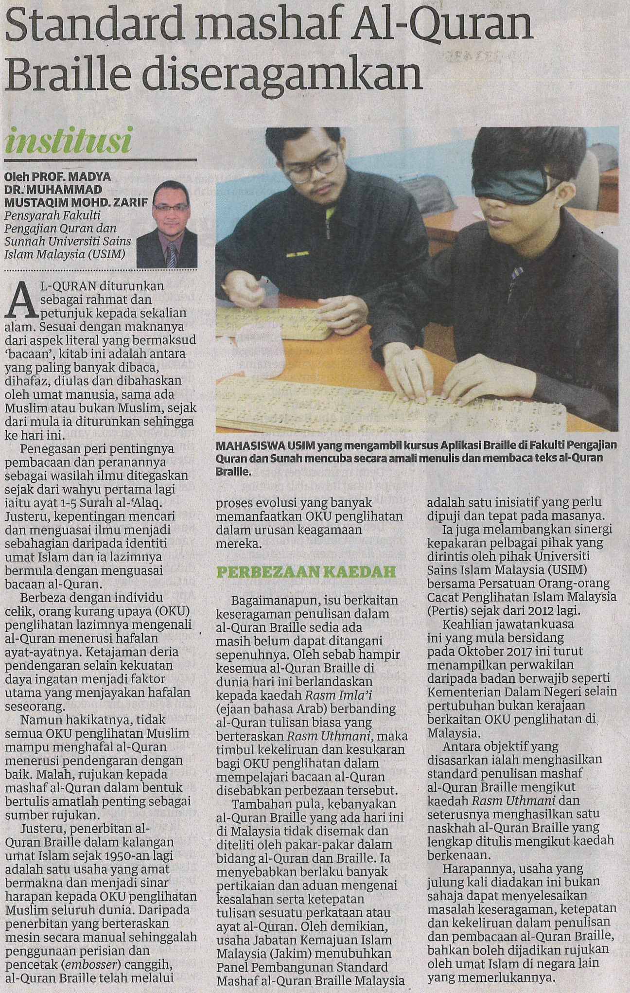 UTUSAN MALAYSIA_ 12 MAC 2018_ STANDARD MASHAF AL-QURAN BRAILLE DISERAGAMKAN.jpg