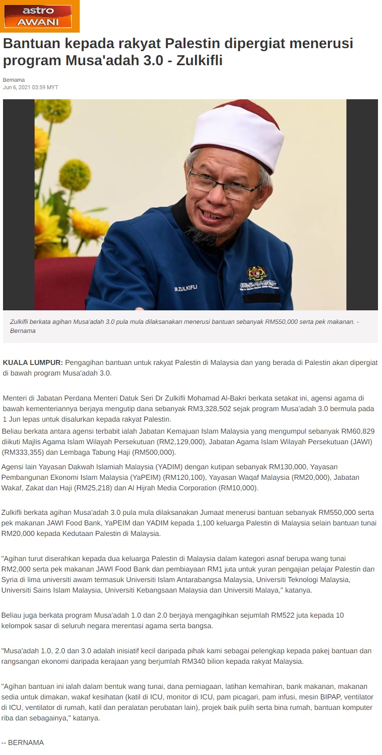 Bantuan Kepada Rakyat Palestin Dipergiat Menerusi Program Musa'Adah 3.0