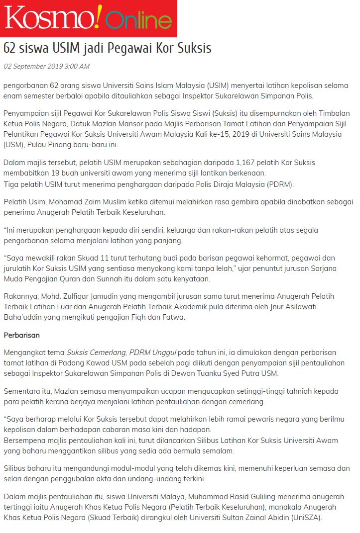 62 Siswa USIM Jadi Pegawai Kor SUKSIS