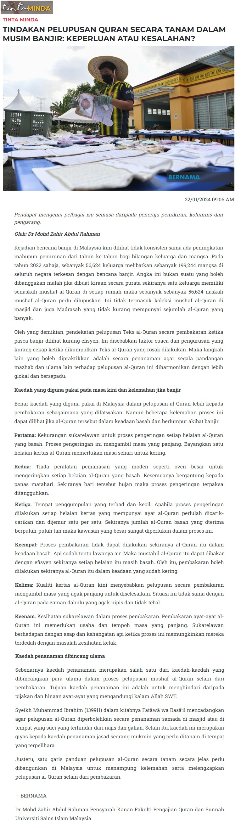Tindakan pelupusan Quran secara tanam dalam musim banjir: keperluan atau kesalahan