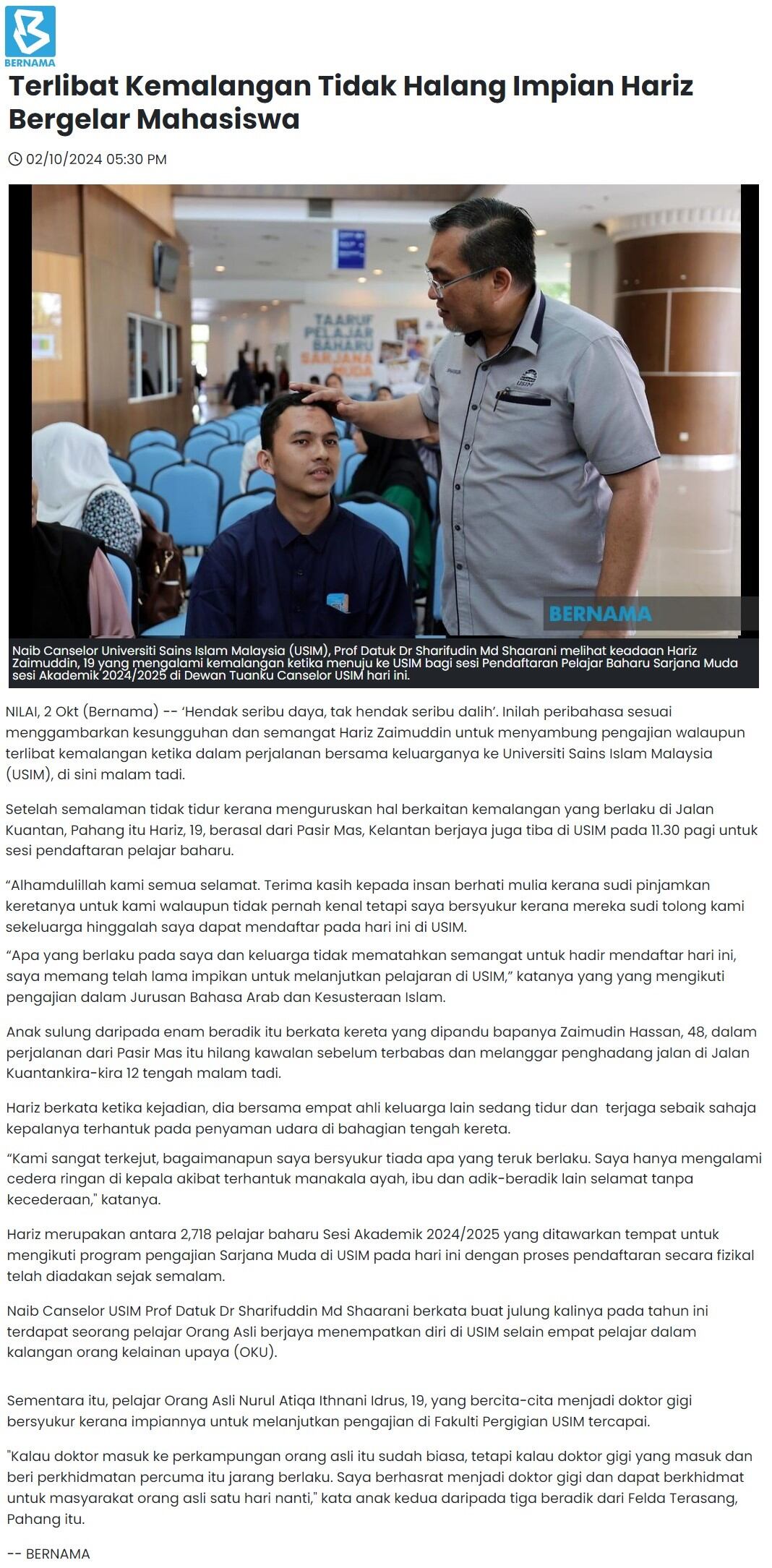 Terlibat kemalangan tidak halang impian Hafiz bergelar mahasiswa