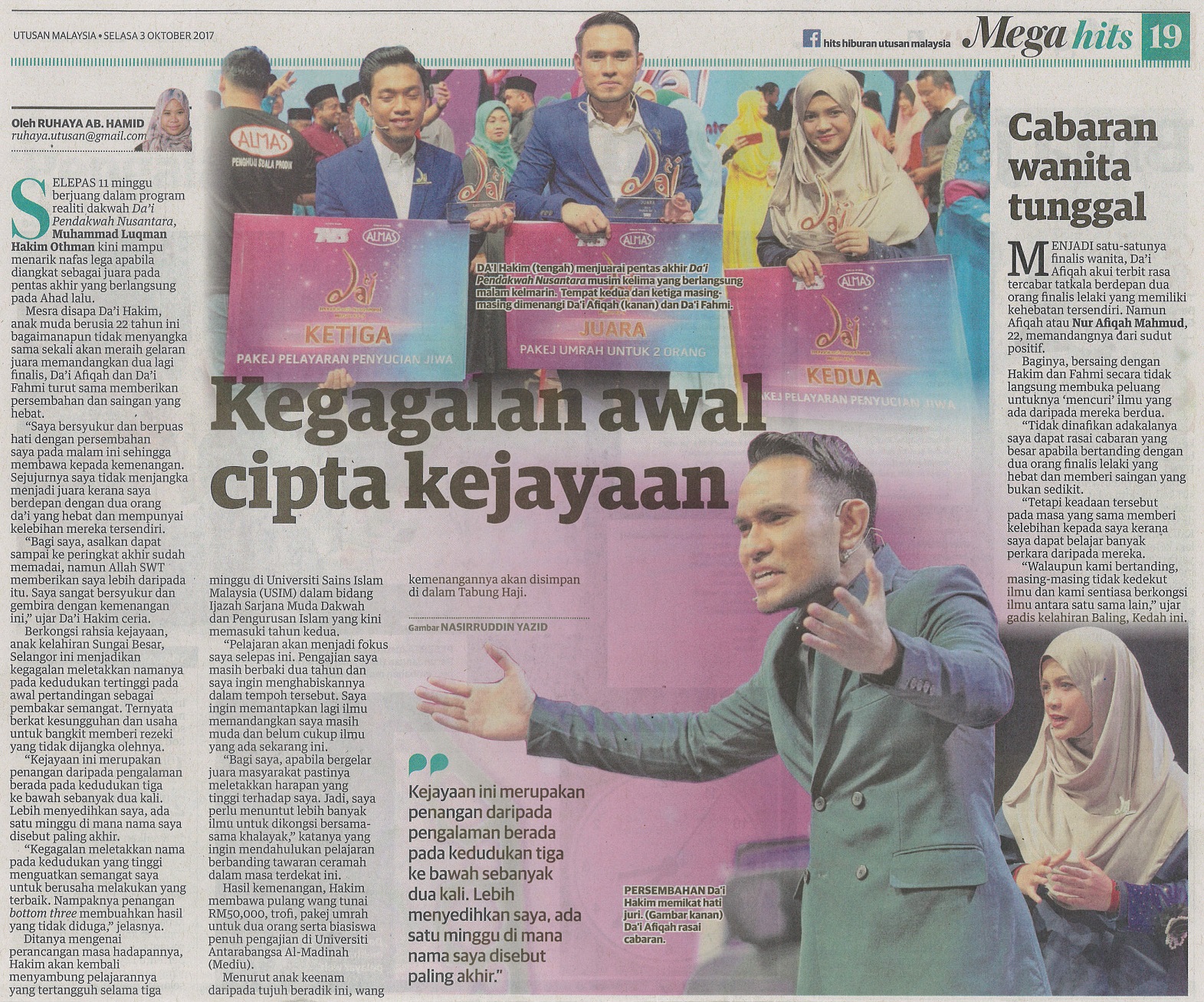 UTUSAN MALAYSIA - KEGAGALAN AWAL CIPTA KEJAYAAN, 3 OKTOBER 2017, MS 19.jpg