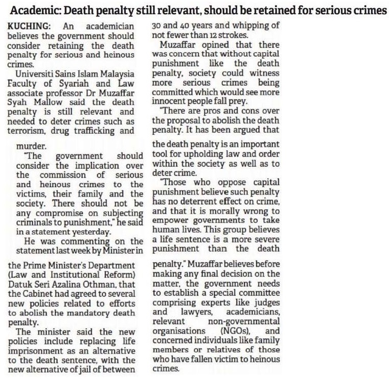 Death penalty still relevant, should be retained for serious crimes