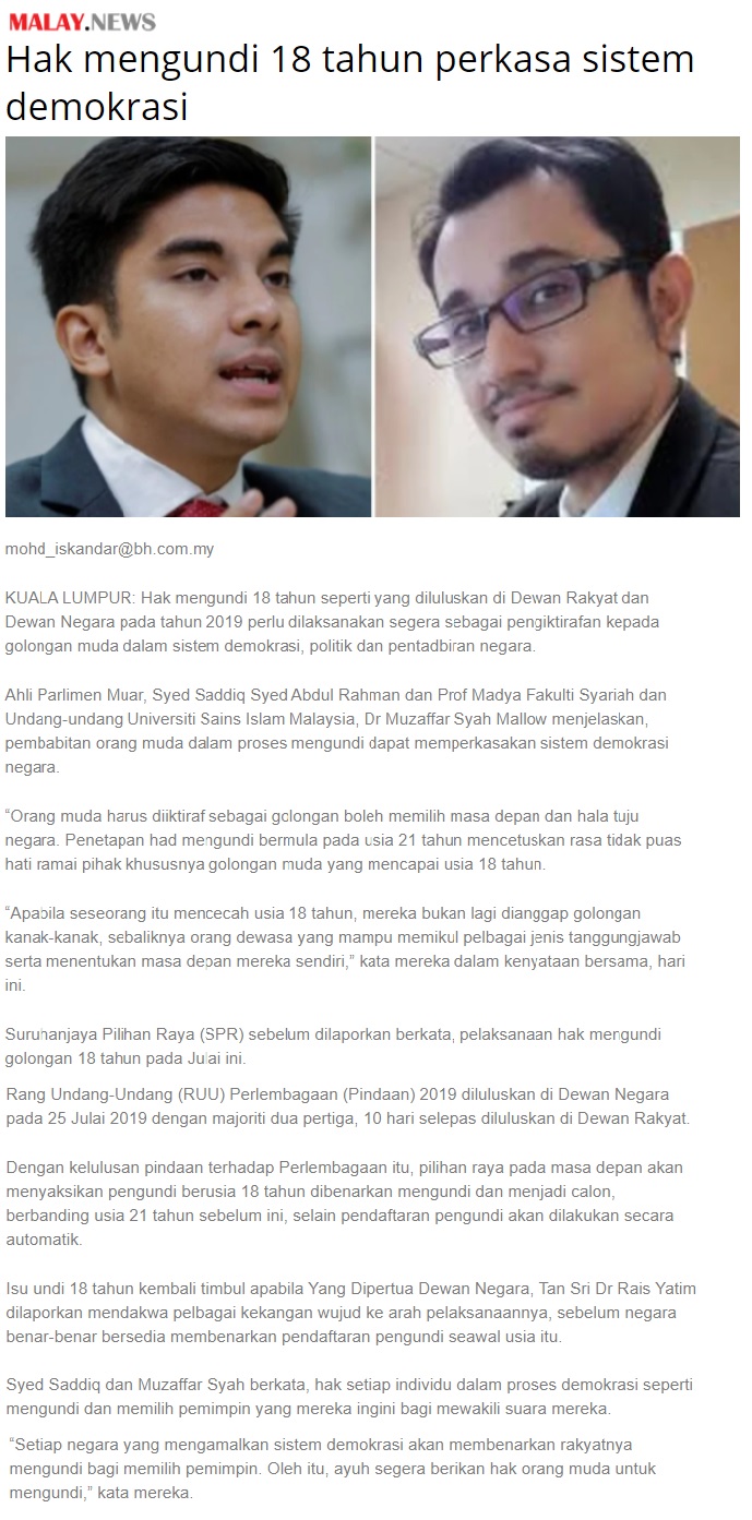 Hak Mengundi 18 Tahun Perkasa Sistem Demokrasi