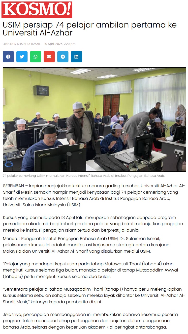 KOSMO ONLINE 19 APRIL 2025 USIM PERSIAP 74 PELAJAR AMBILAN PERTAMA KE UNIVERSITI AL-AZHAR.jpg