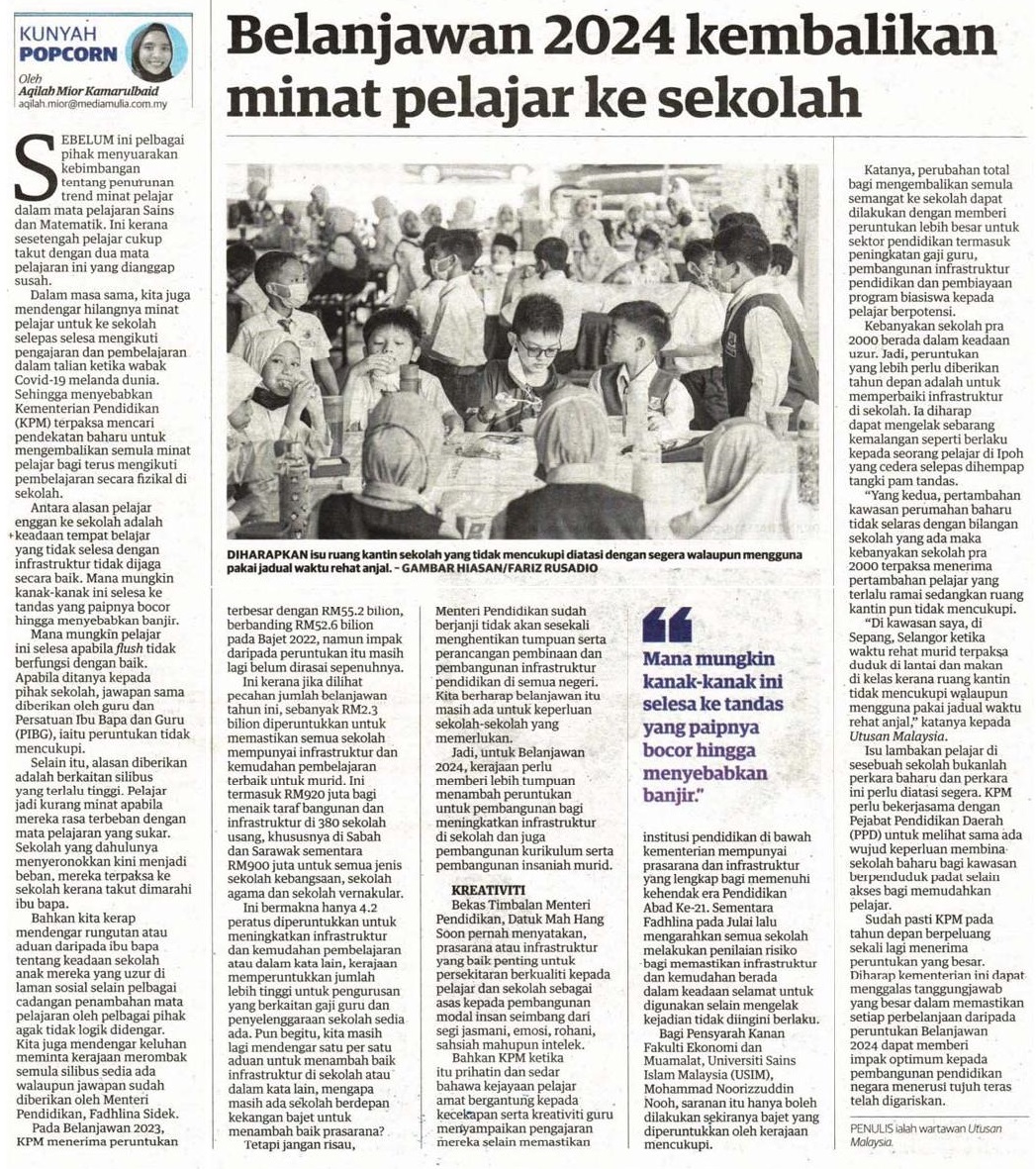 Belanjawan 2024 kembalikan minat pelajar ke sekolah