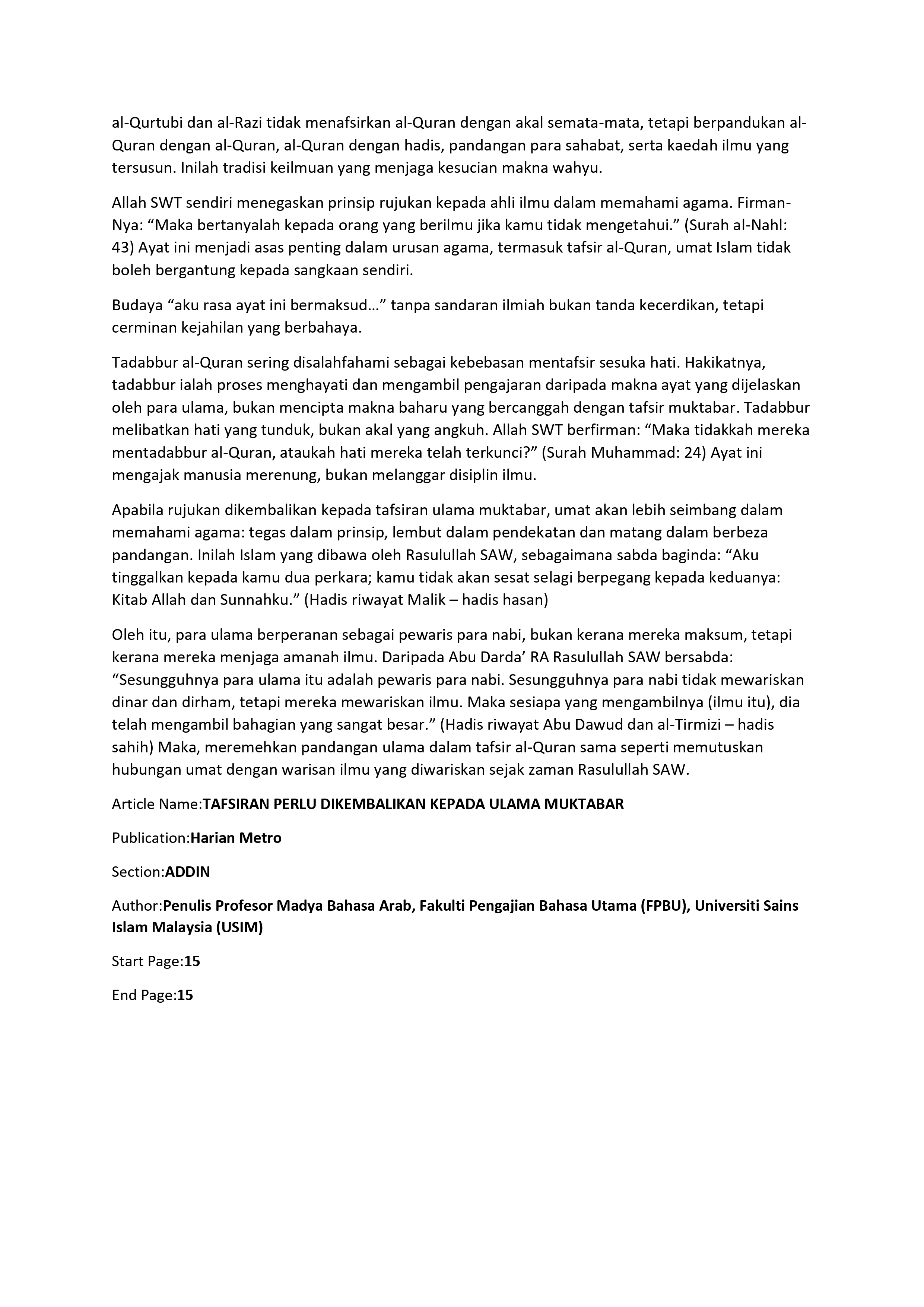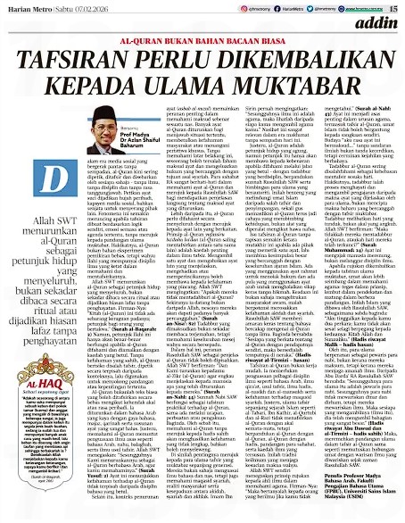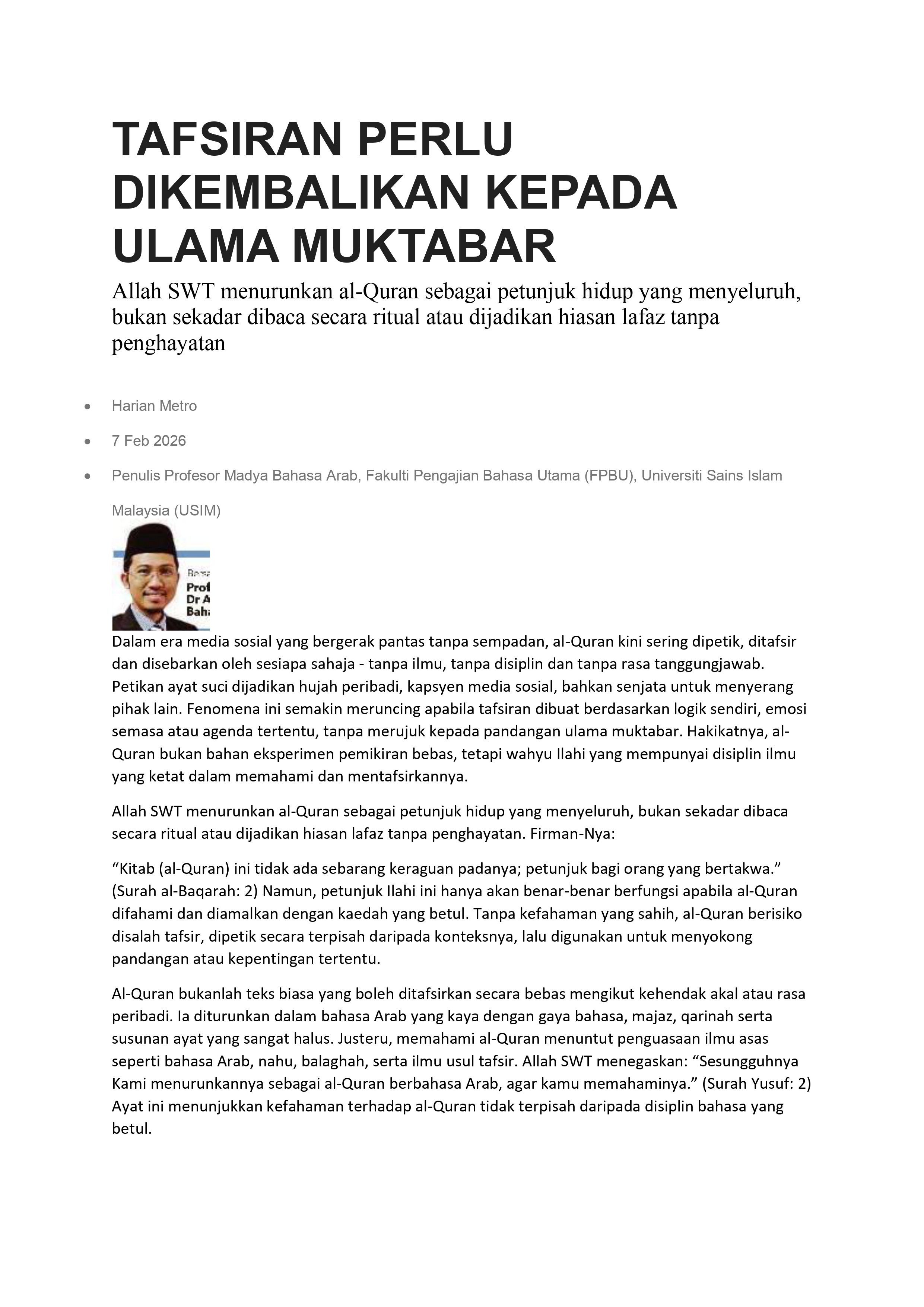 TAFSIRAN PERLU DIKEMBALIKAN KEPADA ULAMA MUKTABAR