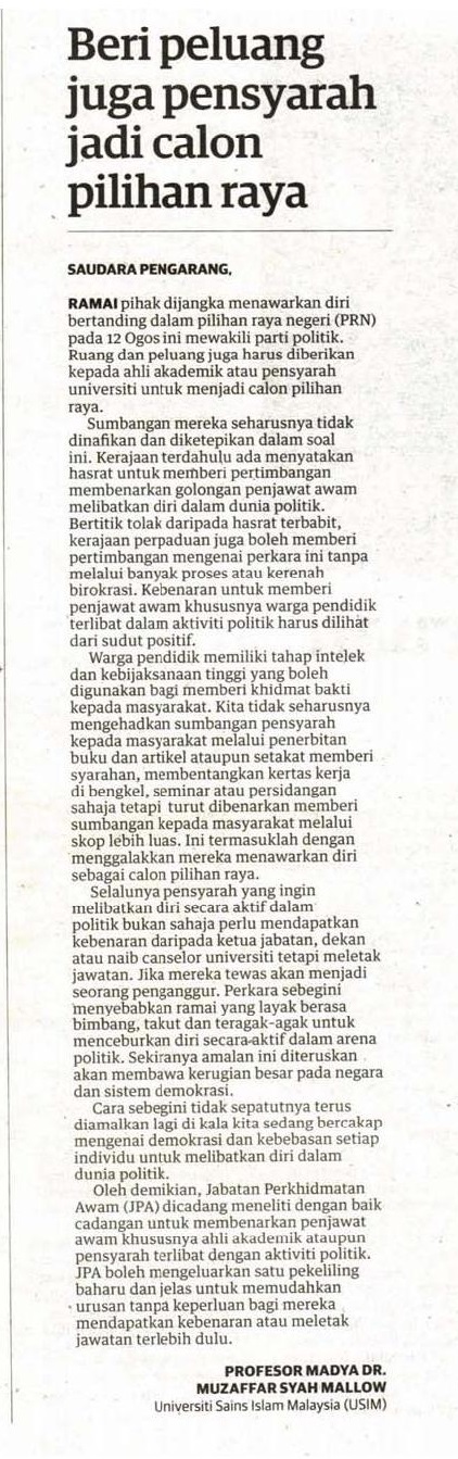 Beri peluang juga pensyarah jadi calon pilihan raya
