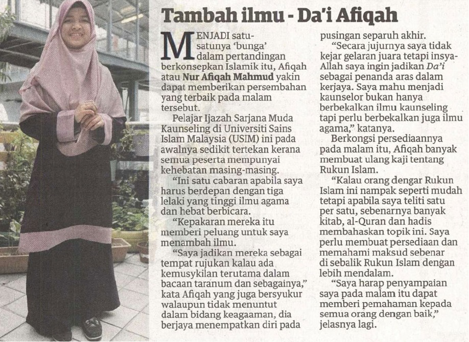 UTUSAN MALAYSIA - TAMBAH ILMU - DA`I AFIQAH, 22 SEPTEMBER 2017, MS 23.jpg
