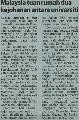 Malaysia Tuan Rumah Dua Kejohanan Antara Universiti
