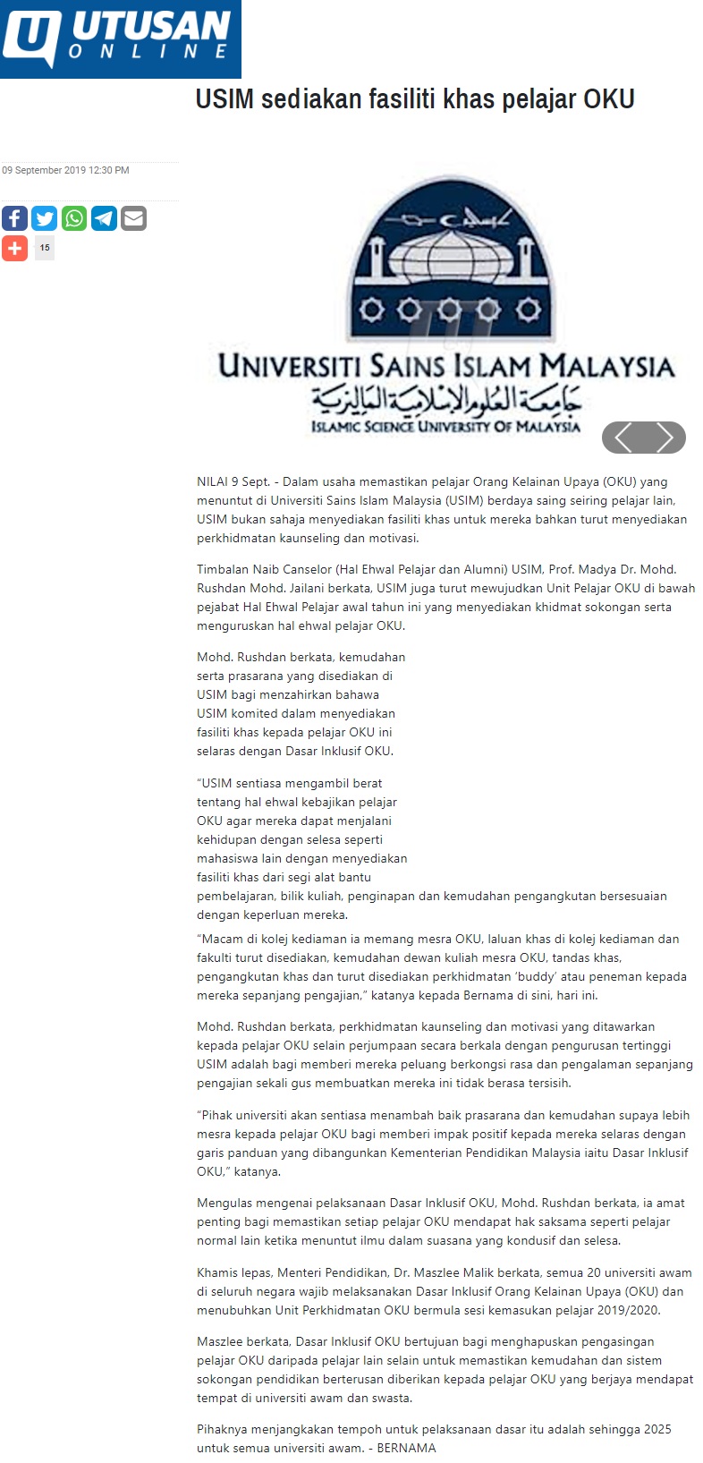 USIM Sediakan Fasiliti Khas Pelajar OKU