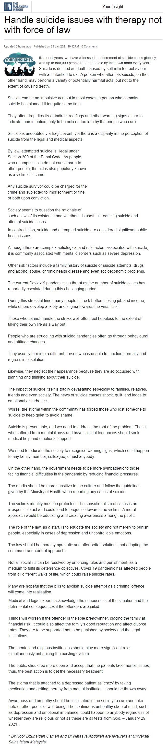 Handle Suicide Issues With Therapy Not With Force Of Law
