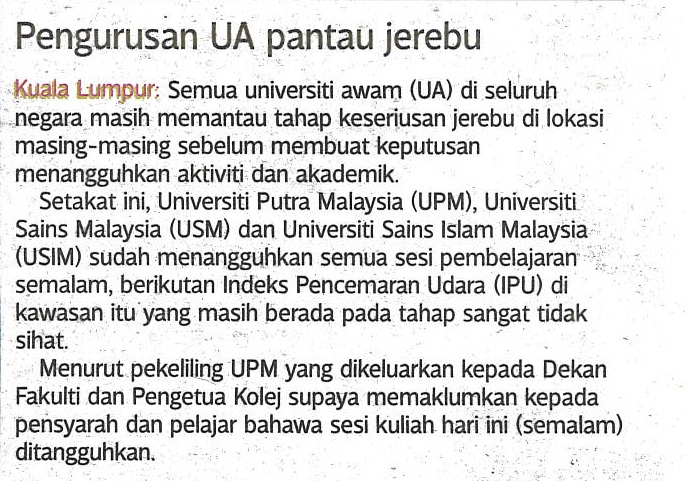 Pengurusan UA Pantau Jerebu