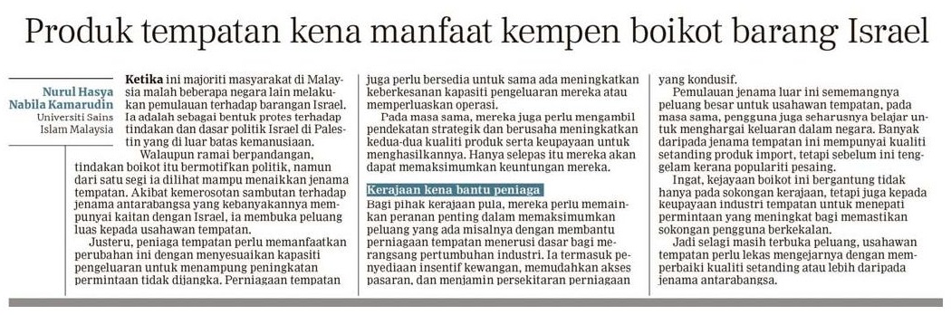 Produk tempatan kena manfaat kempen boikot barang Israel