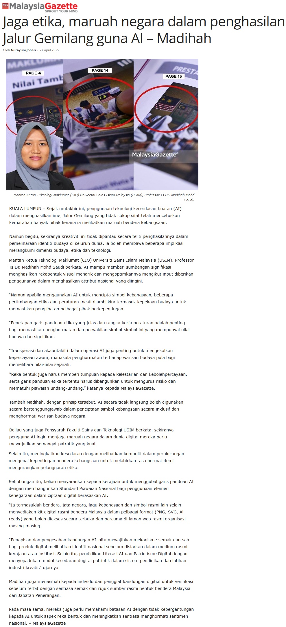 Jaga etika, maruah negara dalam penghasilan Jalur Gemilang guna AI