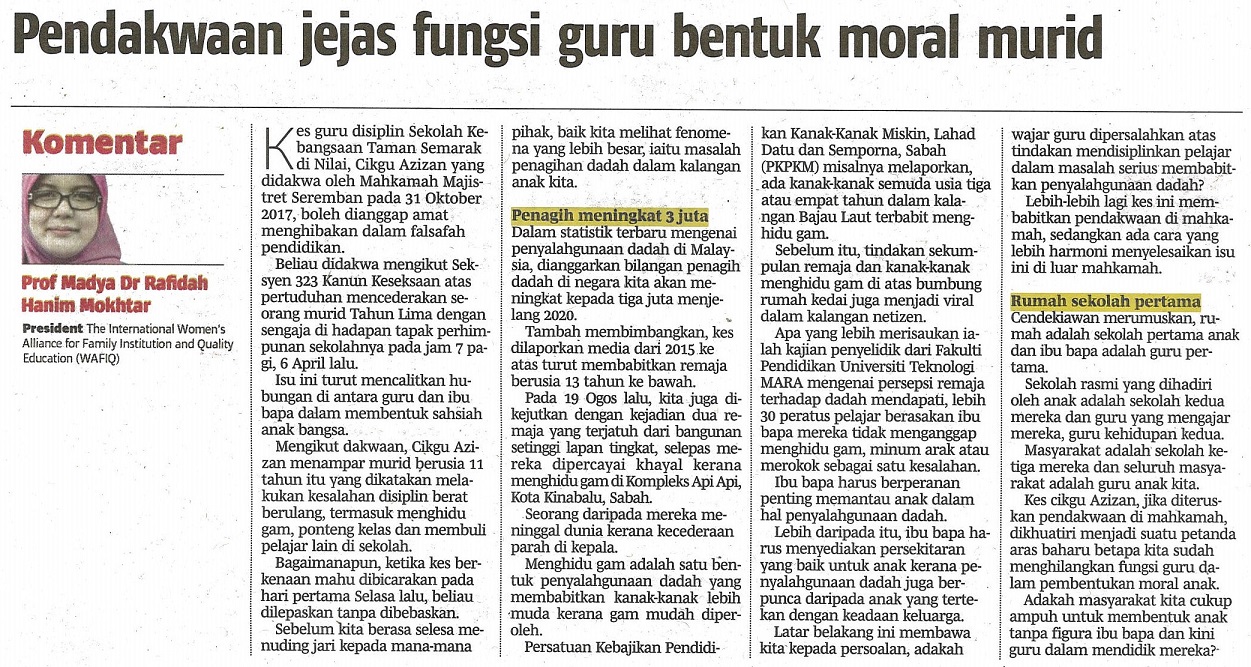 Pendakwaan Jejas Fungsi Guru Bentuk Moral Murid