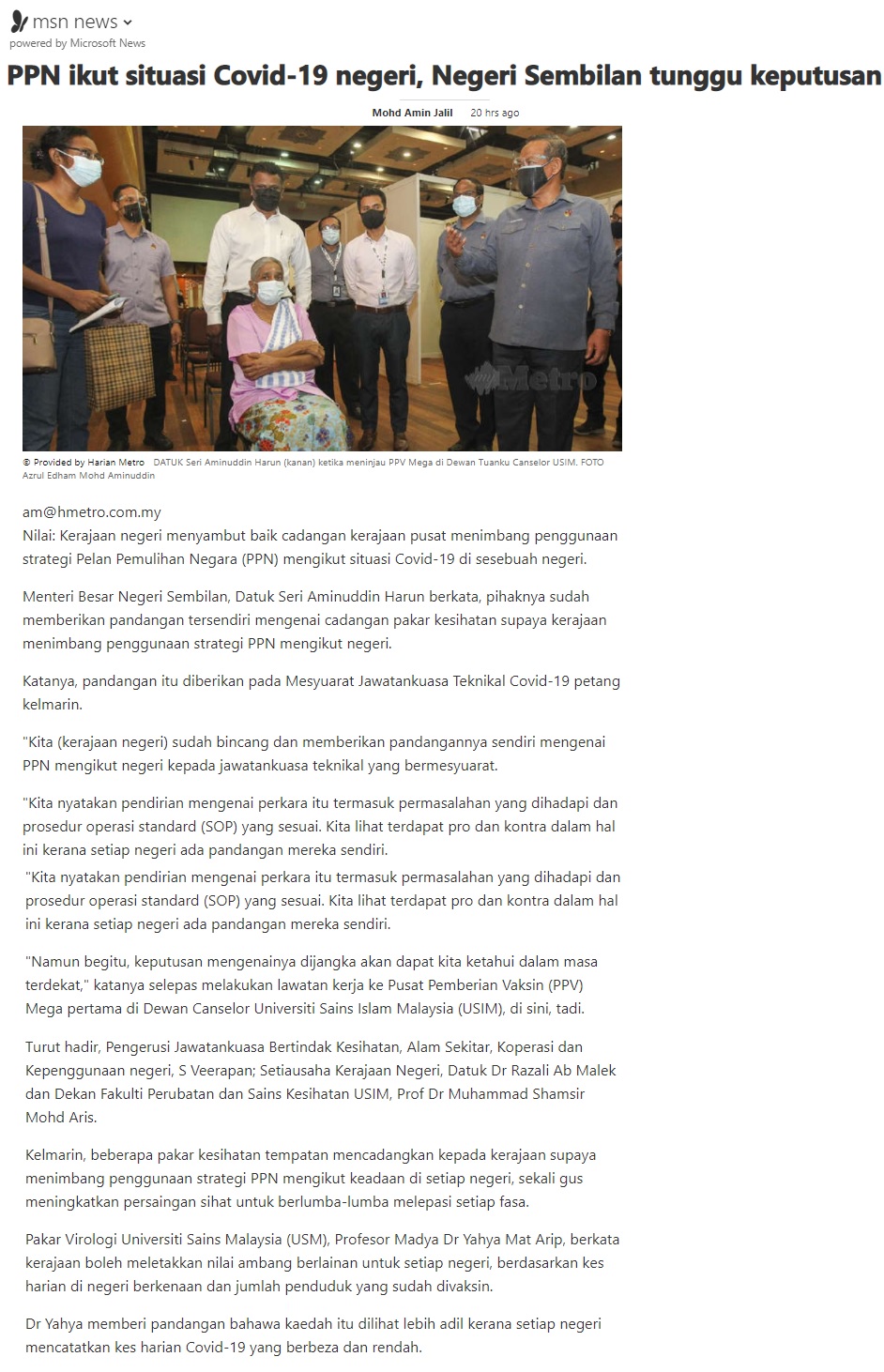 PPN Ikut Situasi Covid-19 Negeri Sembilan Tunggu Keputusan