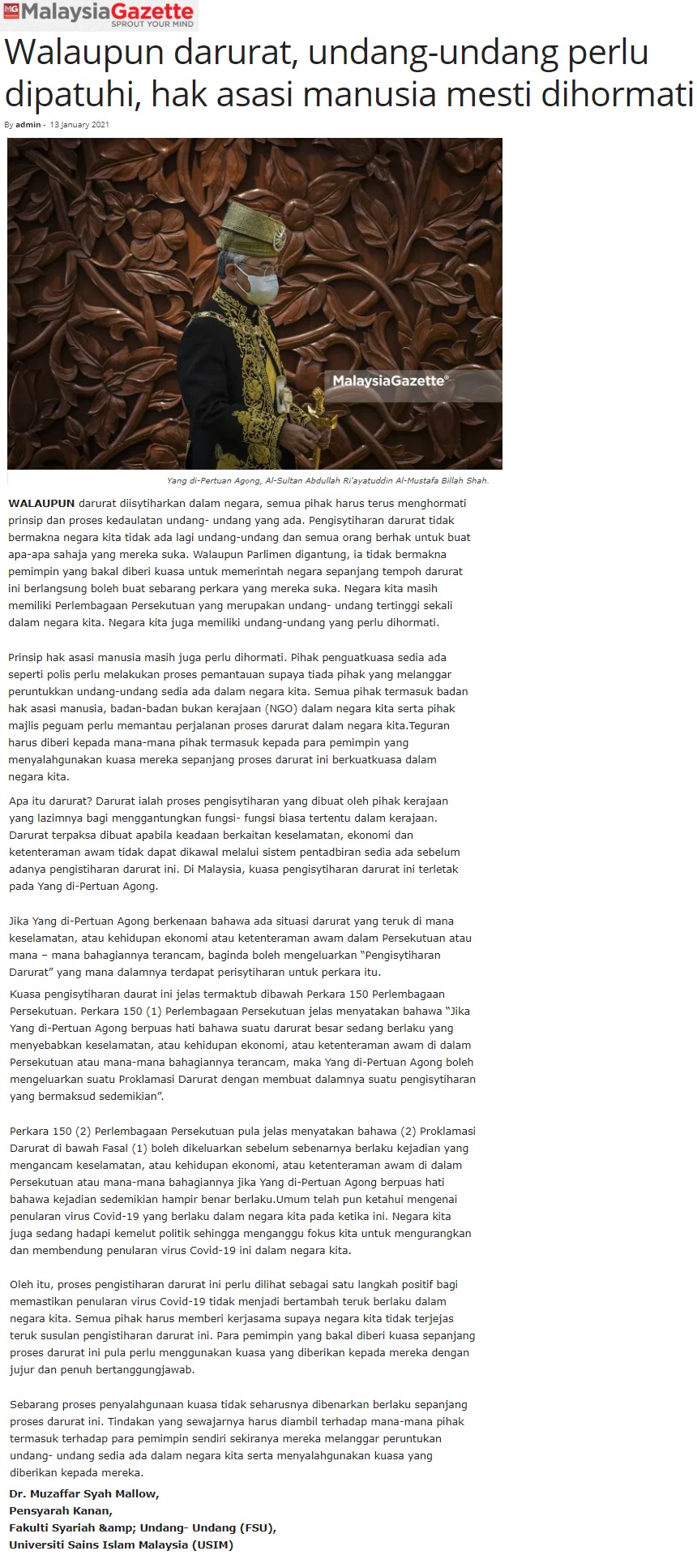 Walaupun Darurat, Undang-Undang Perlu Dipatuhi, Hak Asasi Manusia Mesti Dihormati