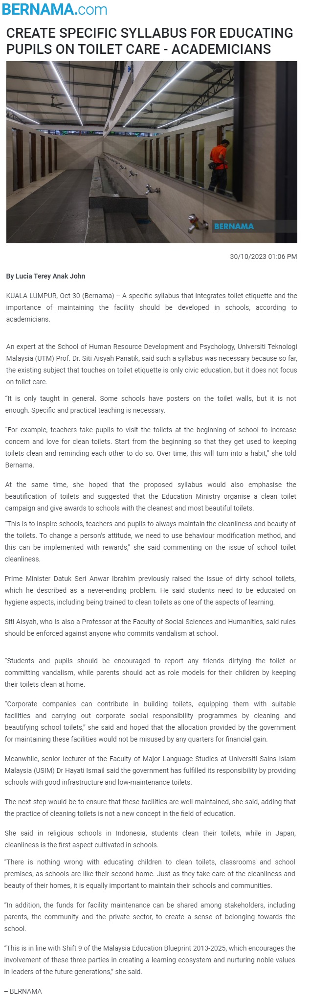 Create specific syllabus for educating pupils on toilet care - Academicians