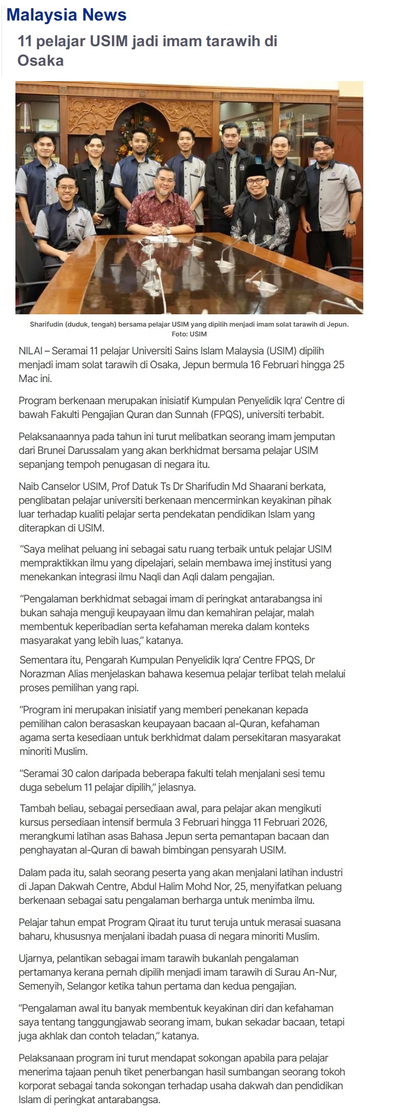 11 PELAJAR USIM JADI IMAM TARAWIH DI JEPUN