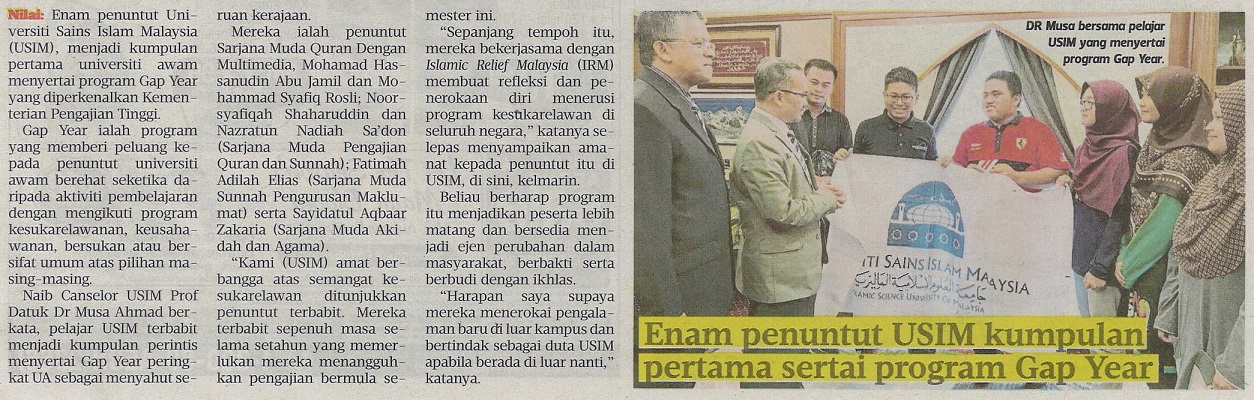 HARIAN METRO - ENAM PENUNTUT USIM KUMPULAN PERTAMA SERTAI PROGRAM GAP YEAR, 14 SEPTEMBER 2017, MS 20.jpg