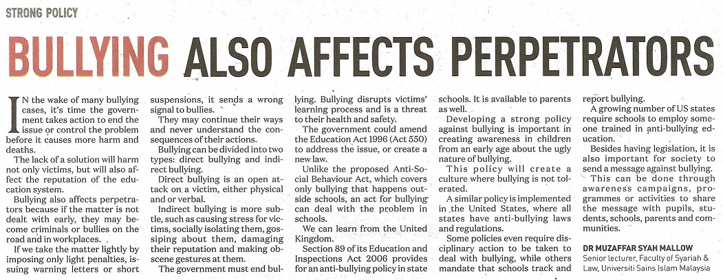 NEW STRAITS TIMES - BULLYING ALSO AFFECTS PERPETRATORS, 29 JUN 2017, MS 20.jpg