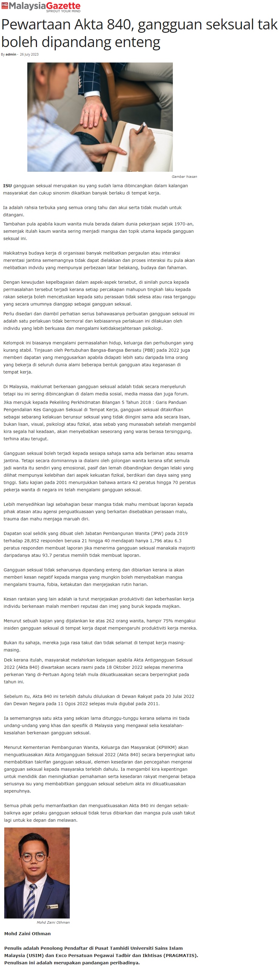 Pewartaan akta 840, ganggual seksual tak boleh dipandang enteng