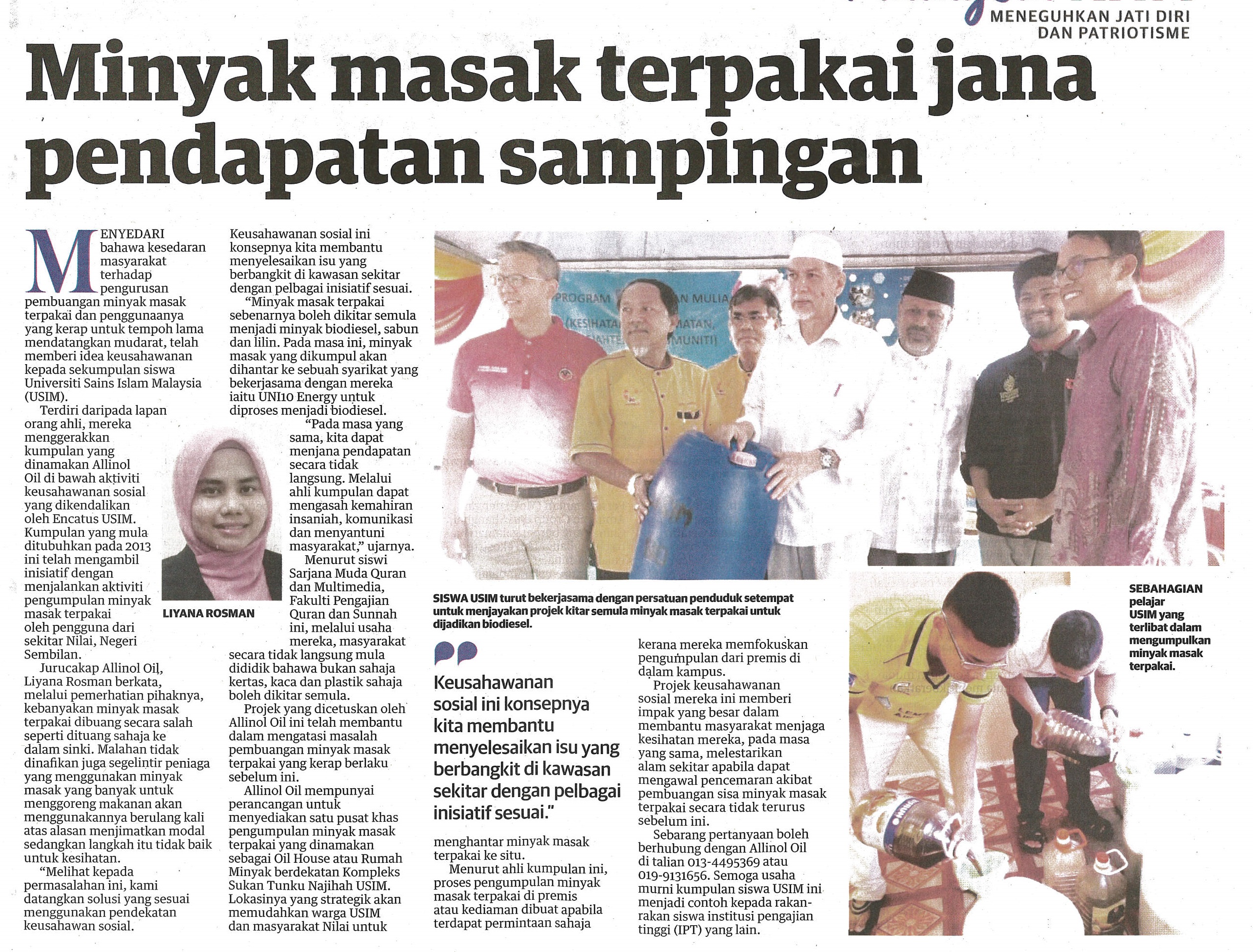Minyak Masak Terpakai Jana Pendapatan Sampingan
