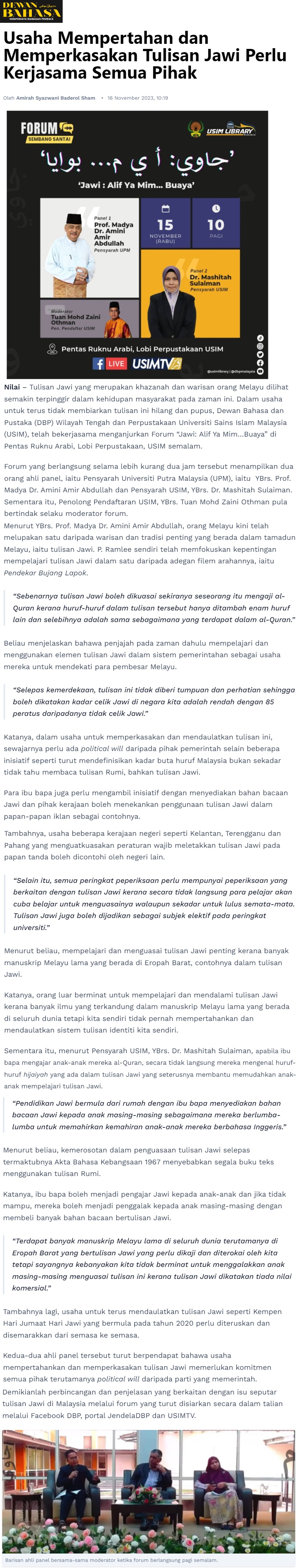 Usaha mempertahan dan memperkasakan tulisan Jawi perlu kerjasama semua pihak