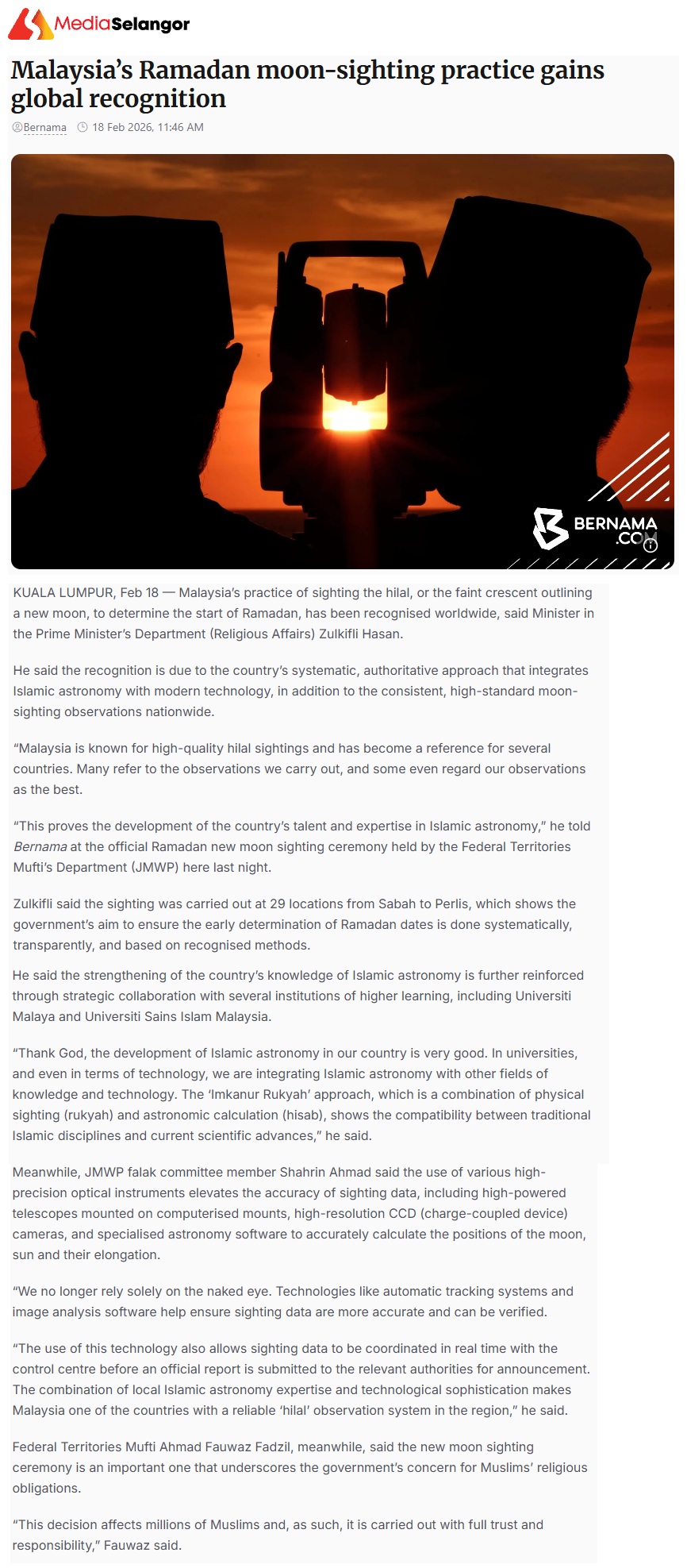 MALAYSIA RAMADAN MOON SIGHTING PRACTICE GAINS GLOBAL RECOGNITION