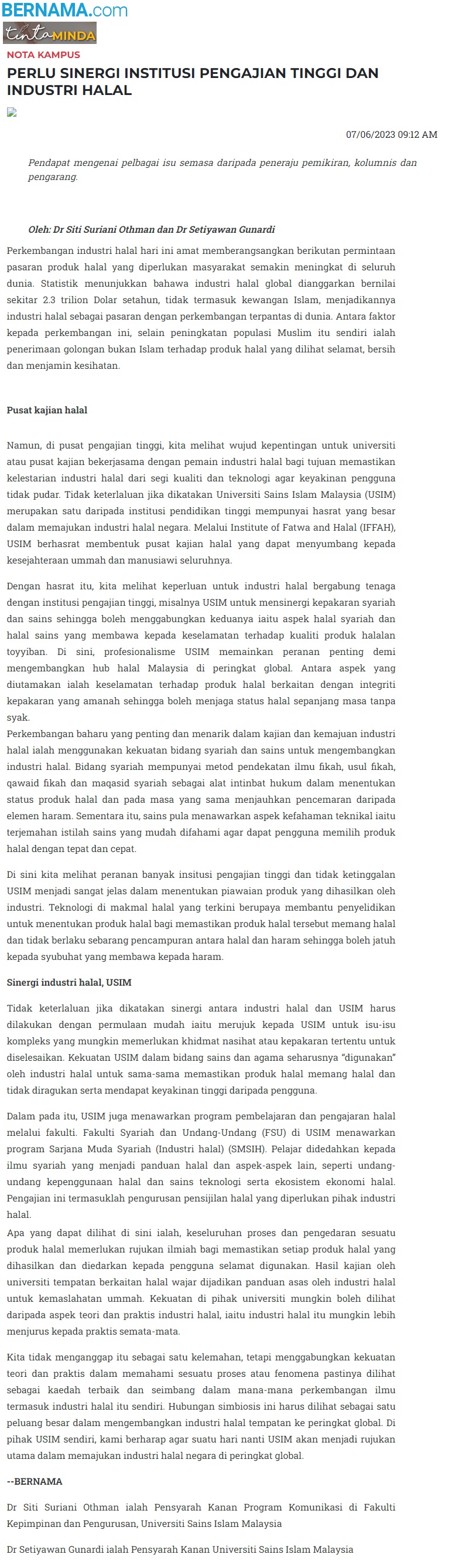 Perlu Sinergi Institusi Pengajian Tinggi Dan Industri Halal