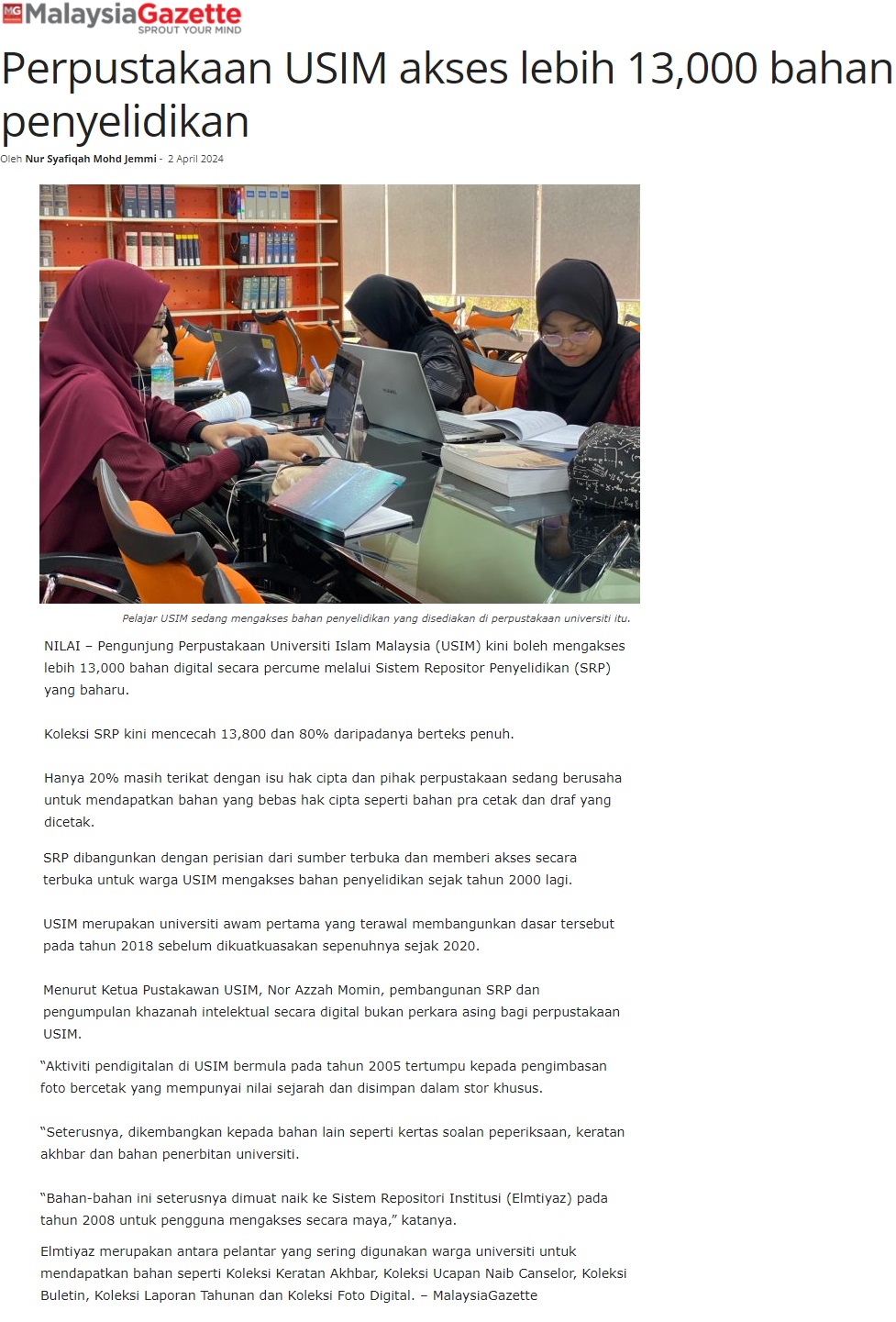 Perpustakaan USIM akses lebih 13000 bahan penyelidikan