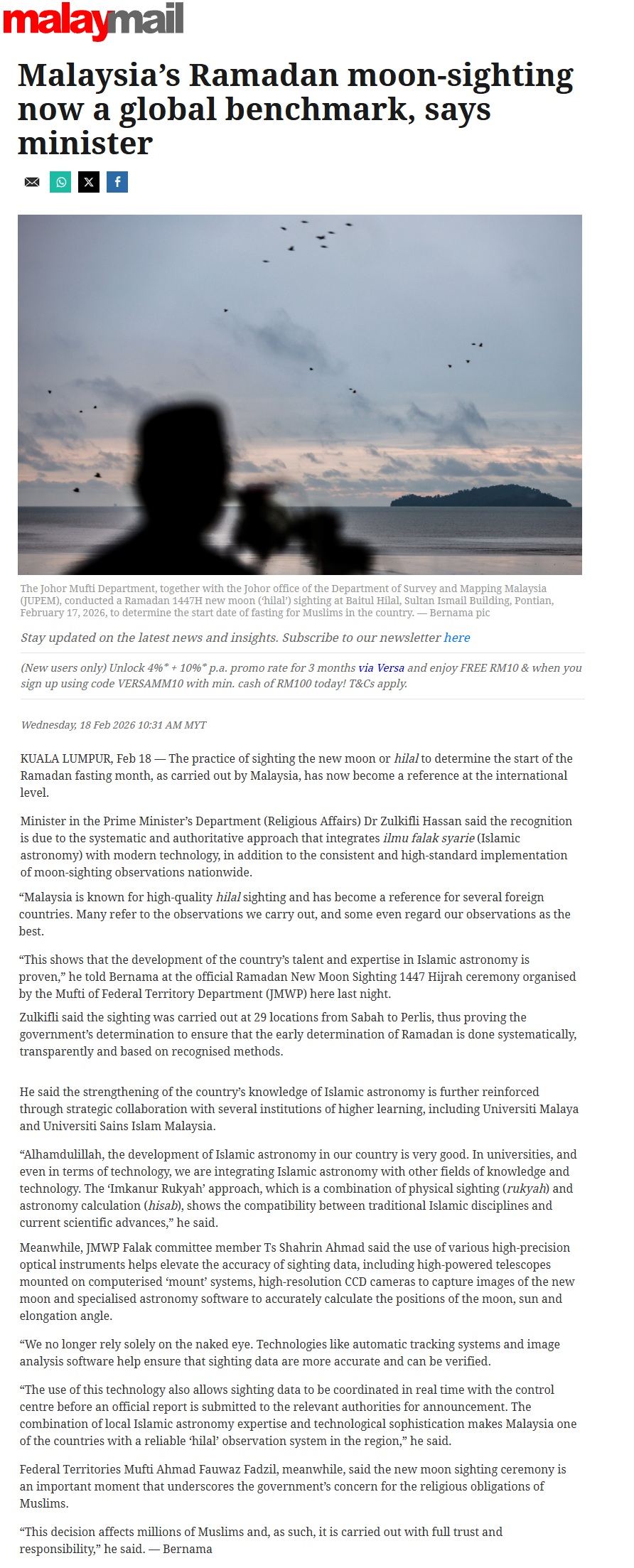 MALAYSIA'S RAMADAN MOON SIGHTING NOW A GLOBAL BENCHMARK
