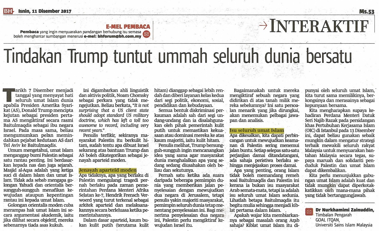 Tindakan Trump Tuntut Ummah Seluruh Dunia Bersatu