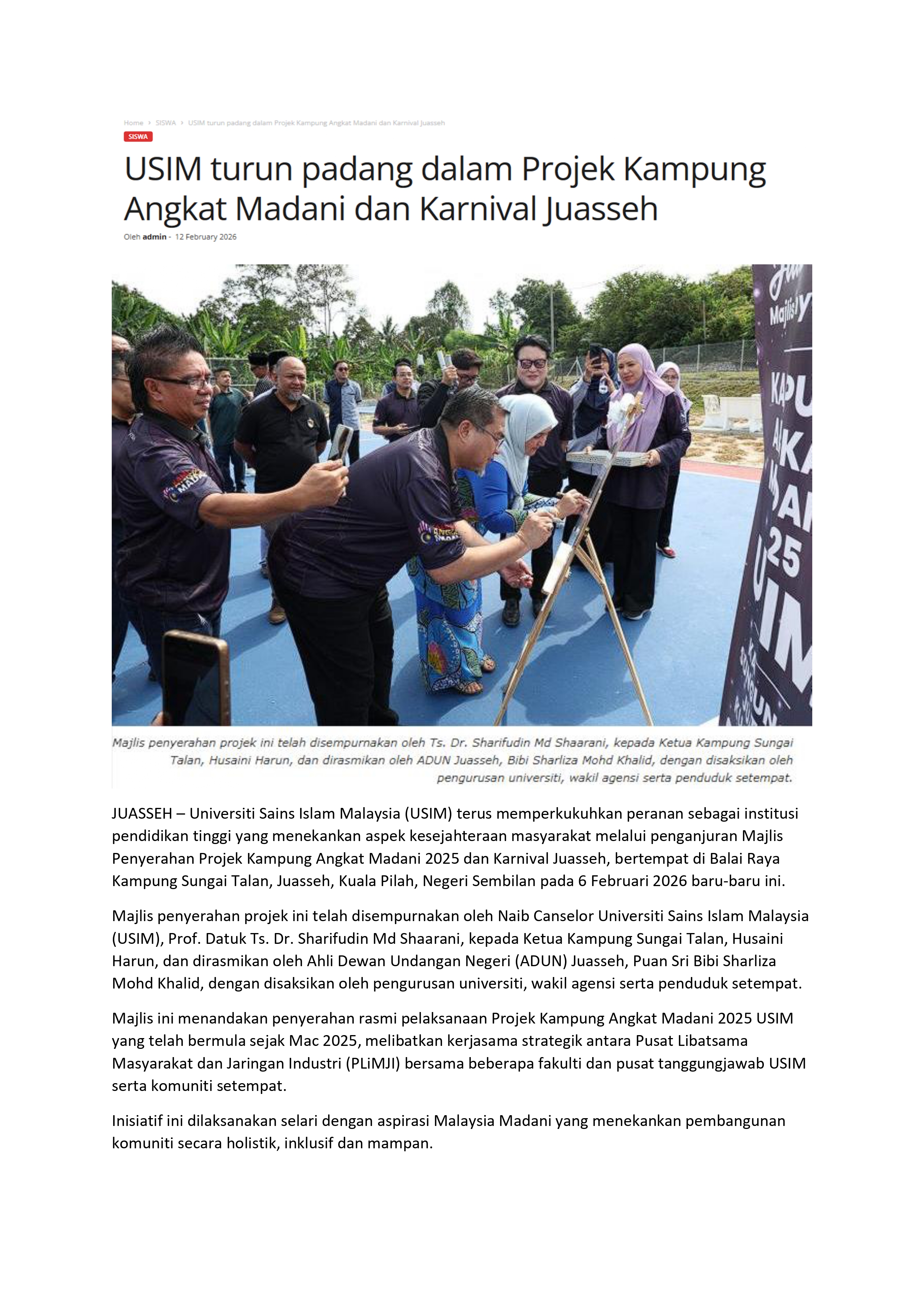 USIM turun padang dalam Projek Kampung Angkat Madani dan Karnival Juasseh